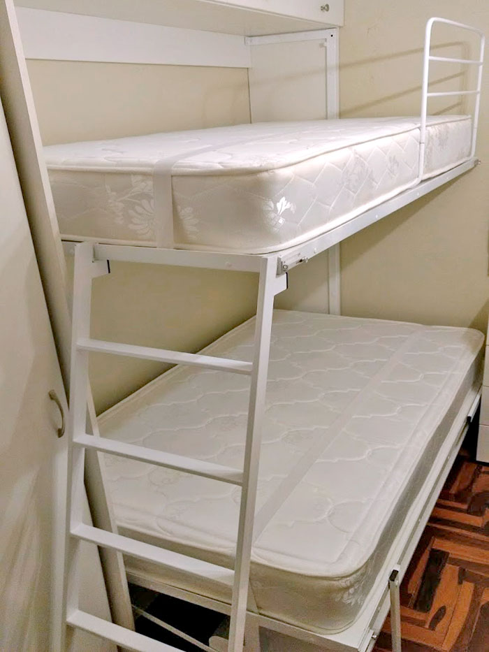 2 niveles de 1 PLAZA estructura de acero y recubierto en melamina 19 mm, sistema de anclaje de pernos de expansi贸n Hylti, incluye baranda y escalera.